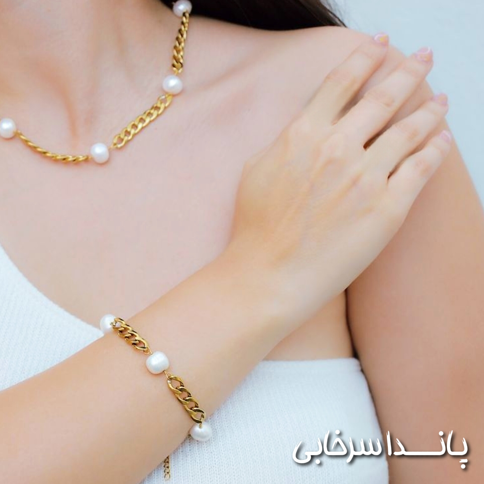 گردنبند و دستبند زنانه کارتیه ترکیب با مروارید۲۲۰٬۰۰۰ تومان