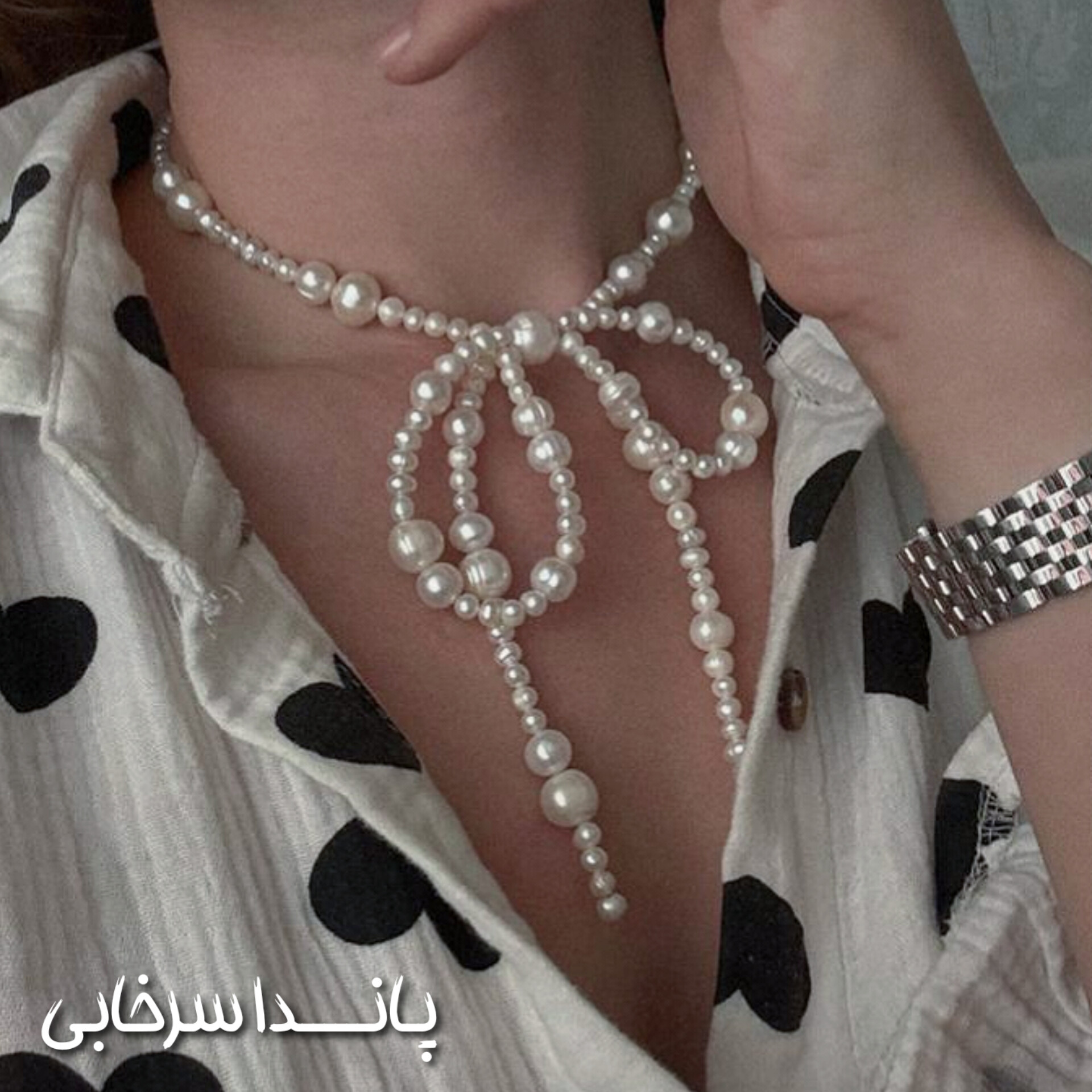 گردنبند مرواریدی طرح پاپیون
