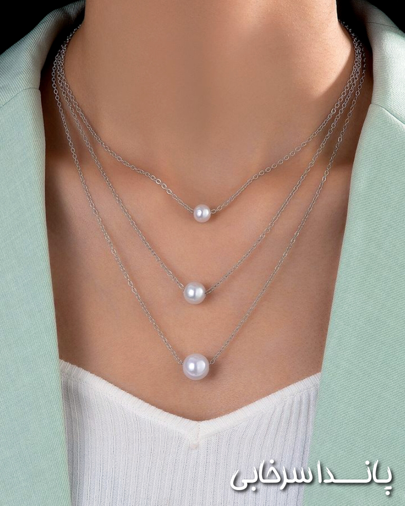 گردنبند و دستبند مرواریدی نقره ای استیل کپی