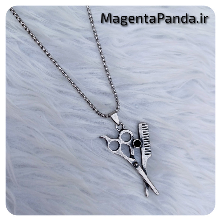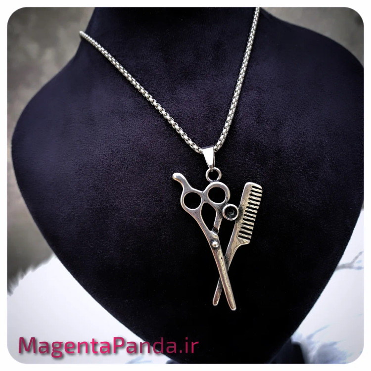 گردنبند قیچی و شونه سیاه قلم مناسب آقایون آرایشگر طول زنجیر ۶۰ سانت استیل و رنگ ثابت