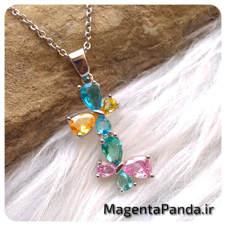 گردنبند دخترانه دو پروانه استیل و رنگ ثابت