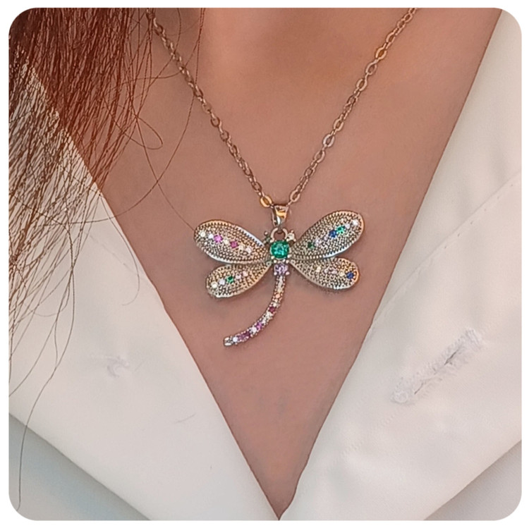گردنبند دخترانه سنجاقک فول نگین استیل رنگ ثابت