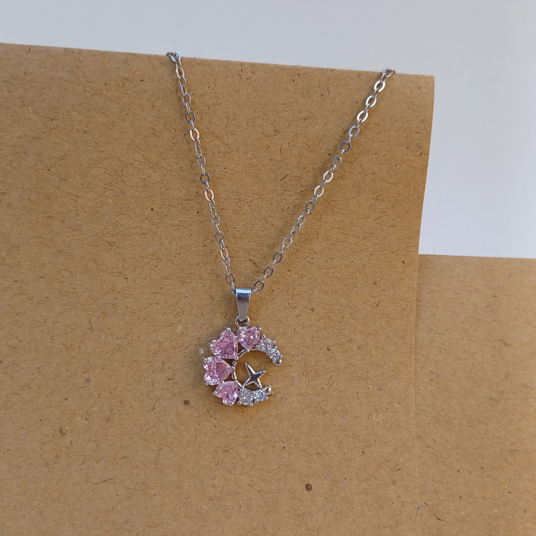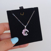 گردنبند دخترانه ماه سوارسکی با نگین های صورتی قلبی