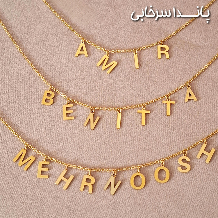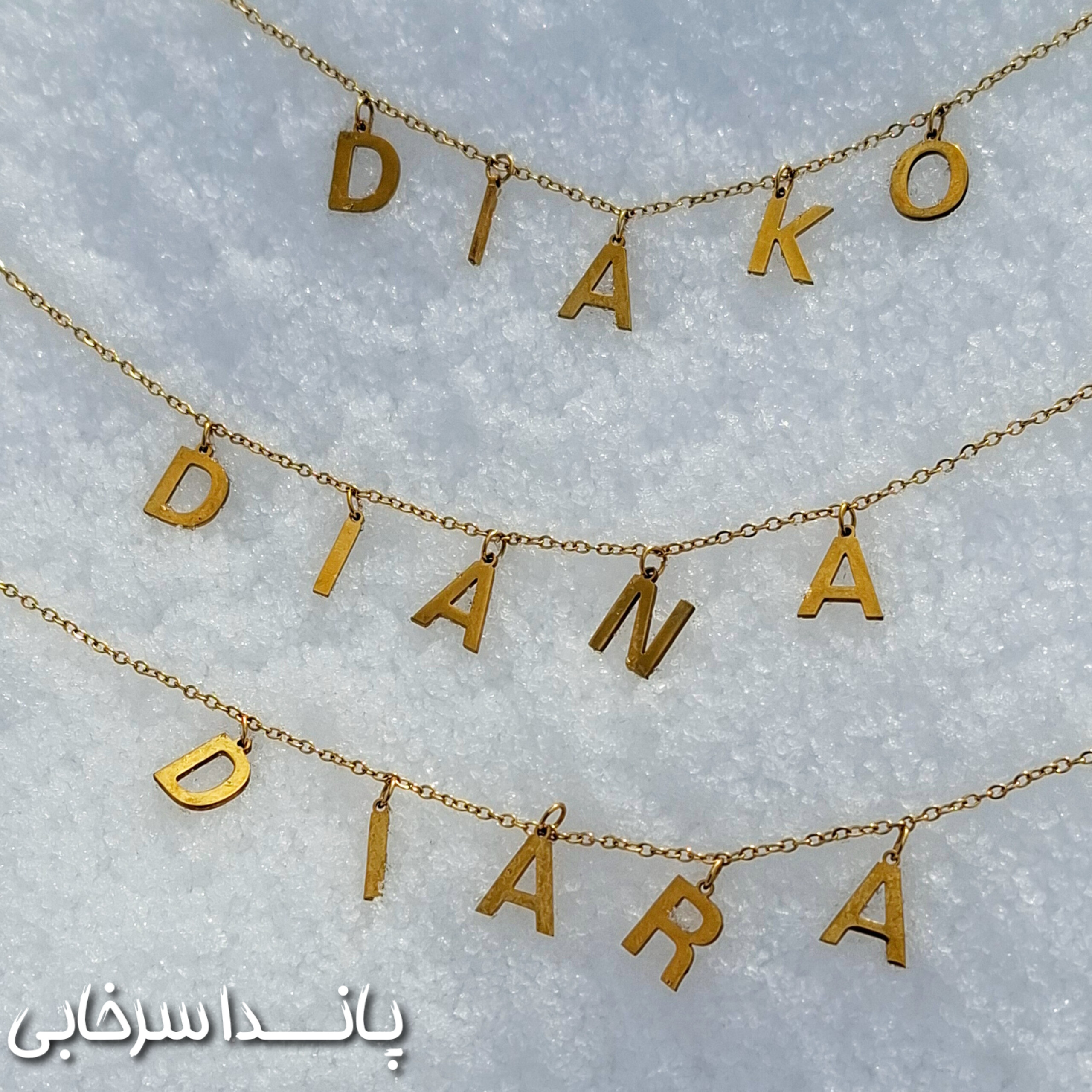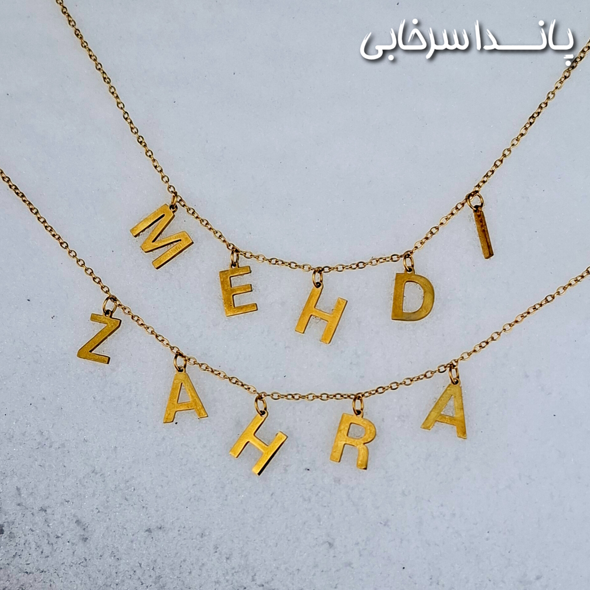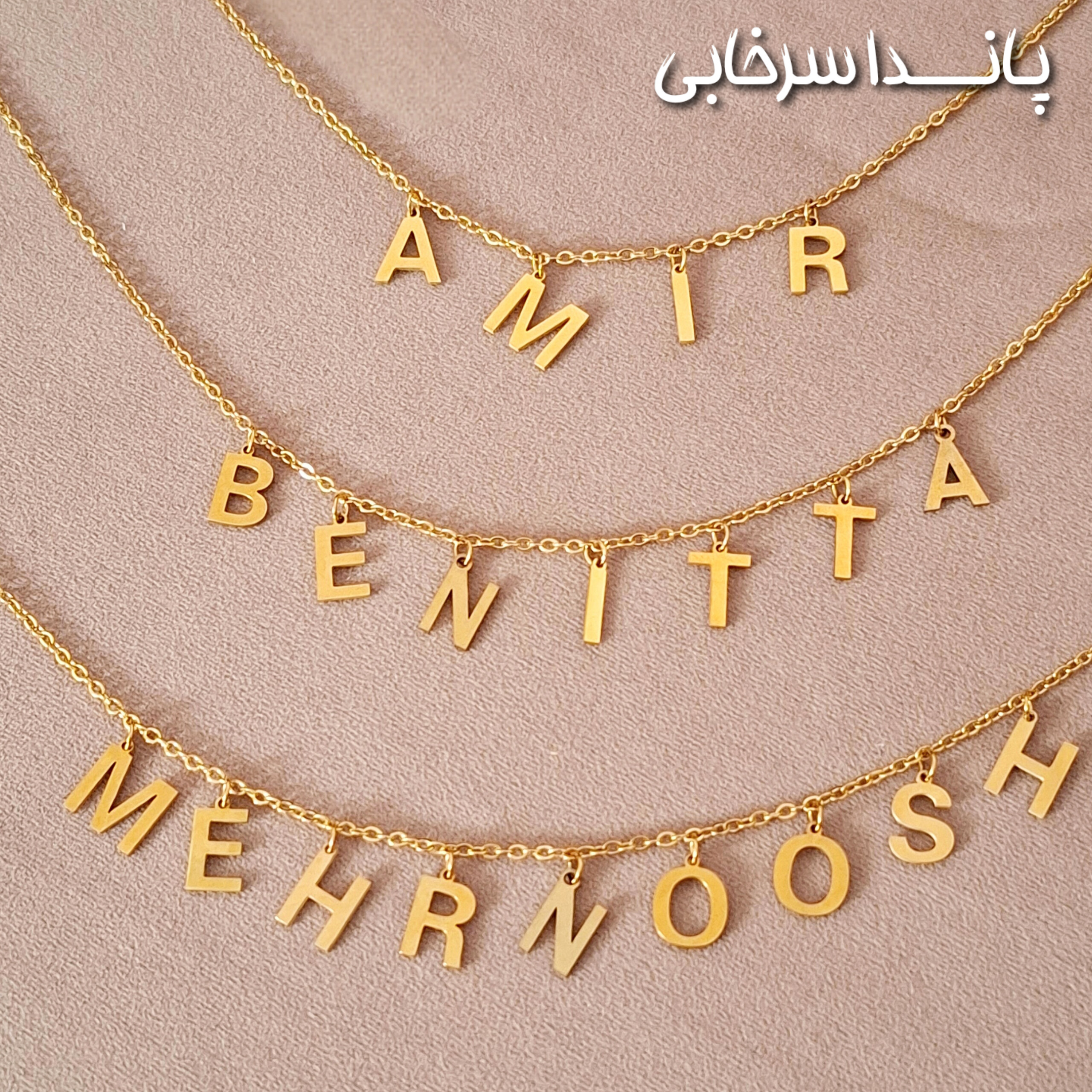 گردنبند سفارشی اسم استیل رنگ ثابت طلایی کافیه اسمی که میخوای تو توضیحات سفارشت برام بنویسی زمان ساخت ۵ روز