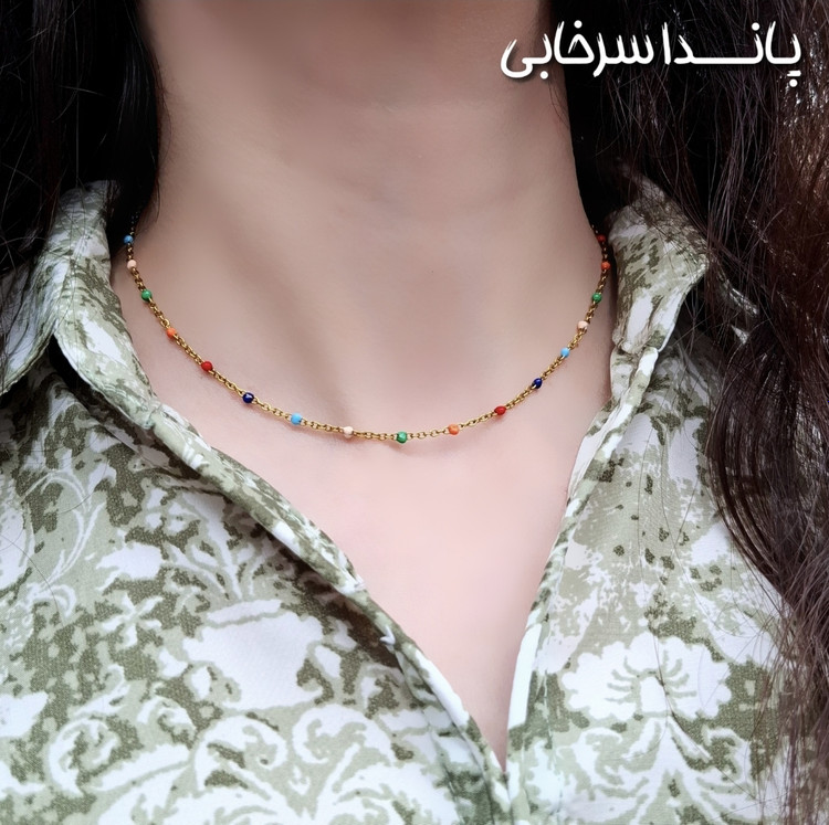 گردنبند توپی رنگی دخترانه | استیل ضدحساسیت رنگ ثابت (مناسب هدیه کودکان)