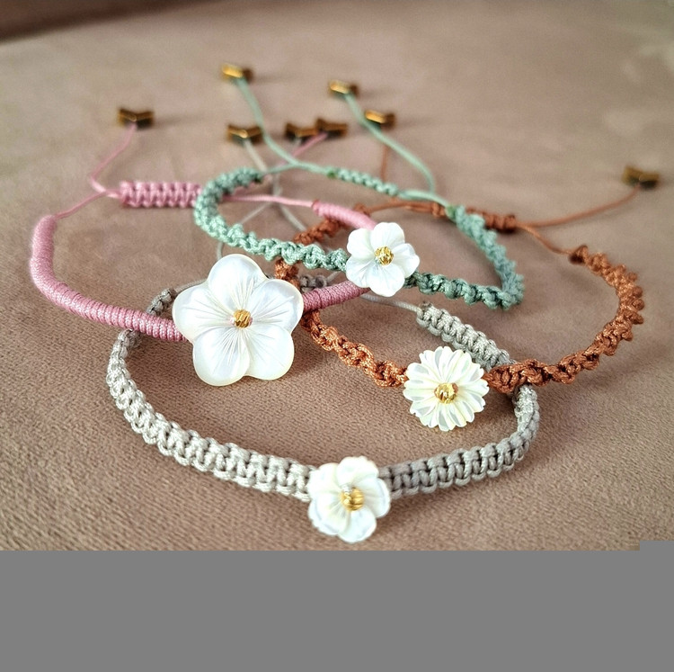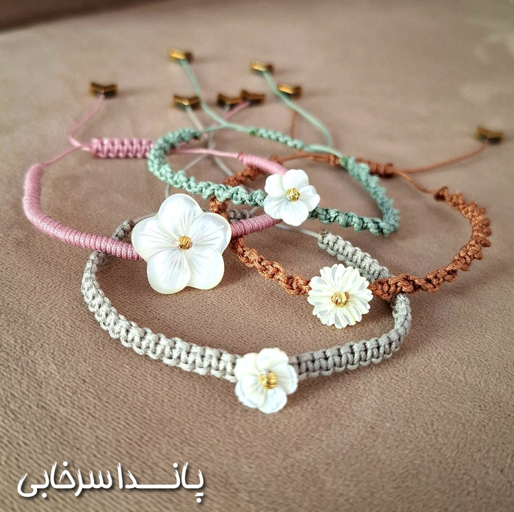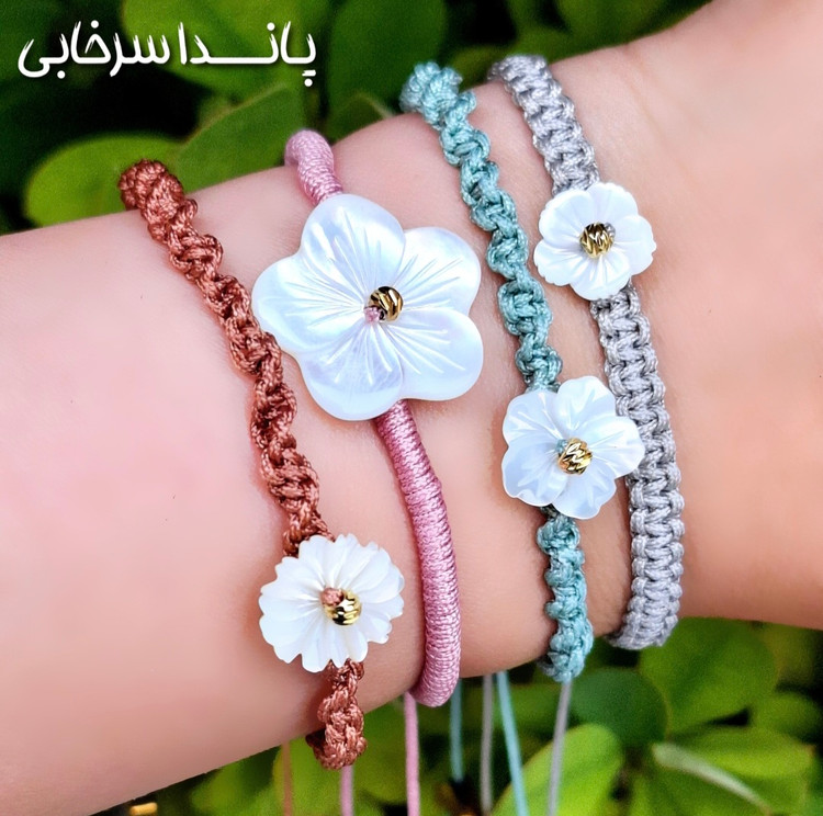 دستبند نائیدا با گلهای صدفی اصل | هدیهای لوکس و طبیعی