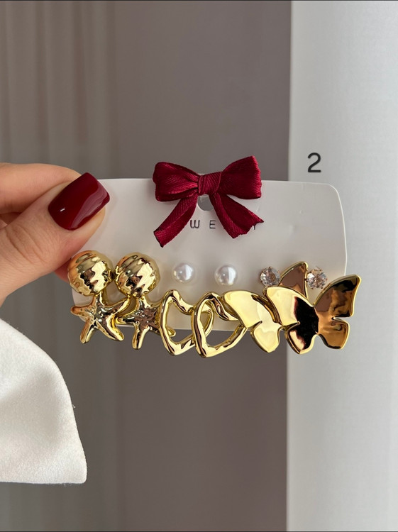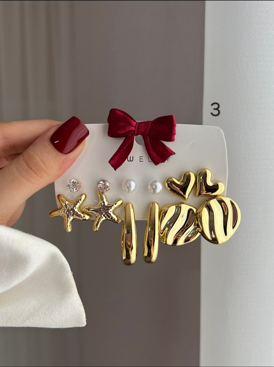 ترکیبی از گوشوارههای آویز ستارههای درخشان، حلقههای مینیمال و طرحهای قلب و زبرا خاص. (مناسب استایلهای روزمره و مدرن)