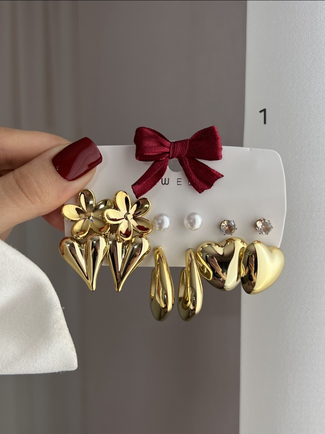 شامل آویزهای درشت و براق طرح گل سهتایی و قلبهای حجیم، در کنار تکنگین و مرواریدهای ظریف. (مناسب استایلهای رمانتیک و مجلسی)