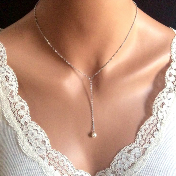 گردنبند آویز تک مروارید استیل رنگ ثابت