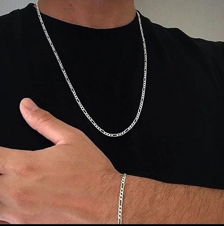 ست گردنبند و دستبند مردانه مدل فیگارو مناسب هدیه روز مرد