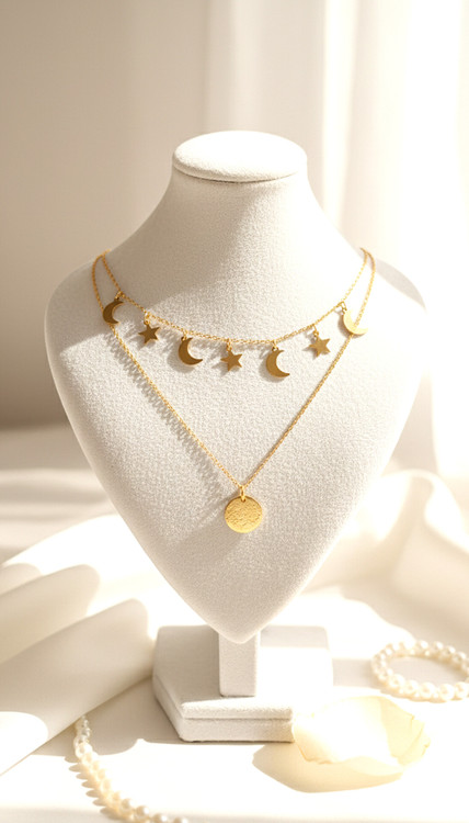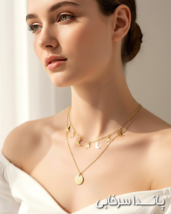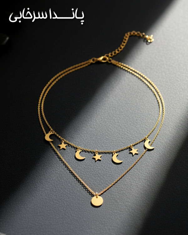 گردنبند دو لاین ماه و ستاره استیل رنگ ثابت شیک