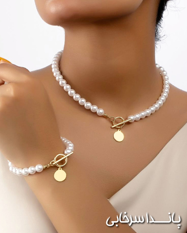 دستبند و گردنبند مرواریدی مجلسی با قفل تی