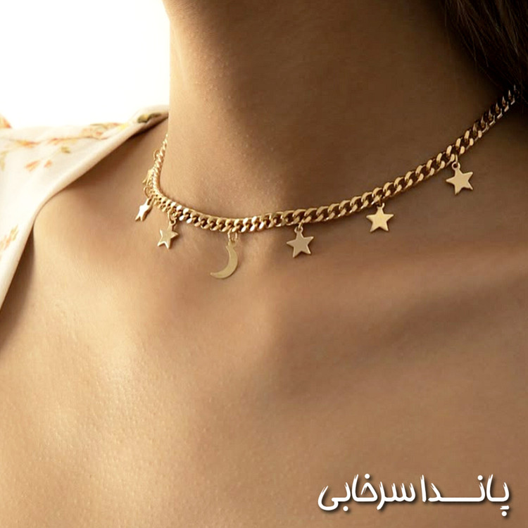 گردنبند شیک ماه و ستاره استیل رنگ ثابت