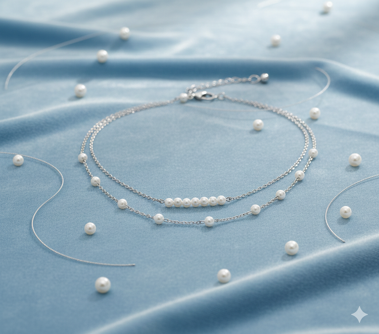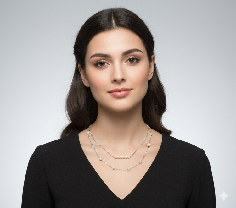 گردنبند دو لاین مرواریدی استیل رنگ ثابت