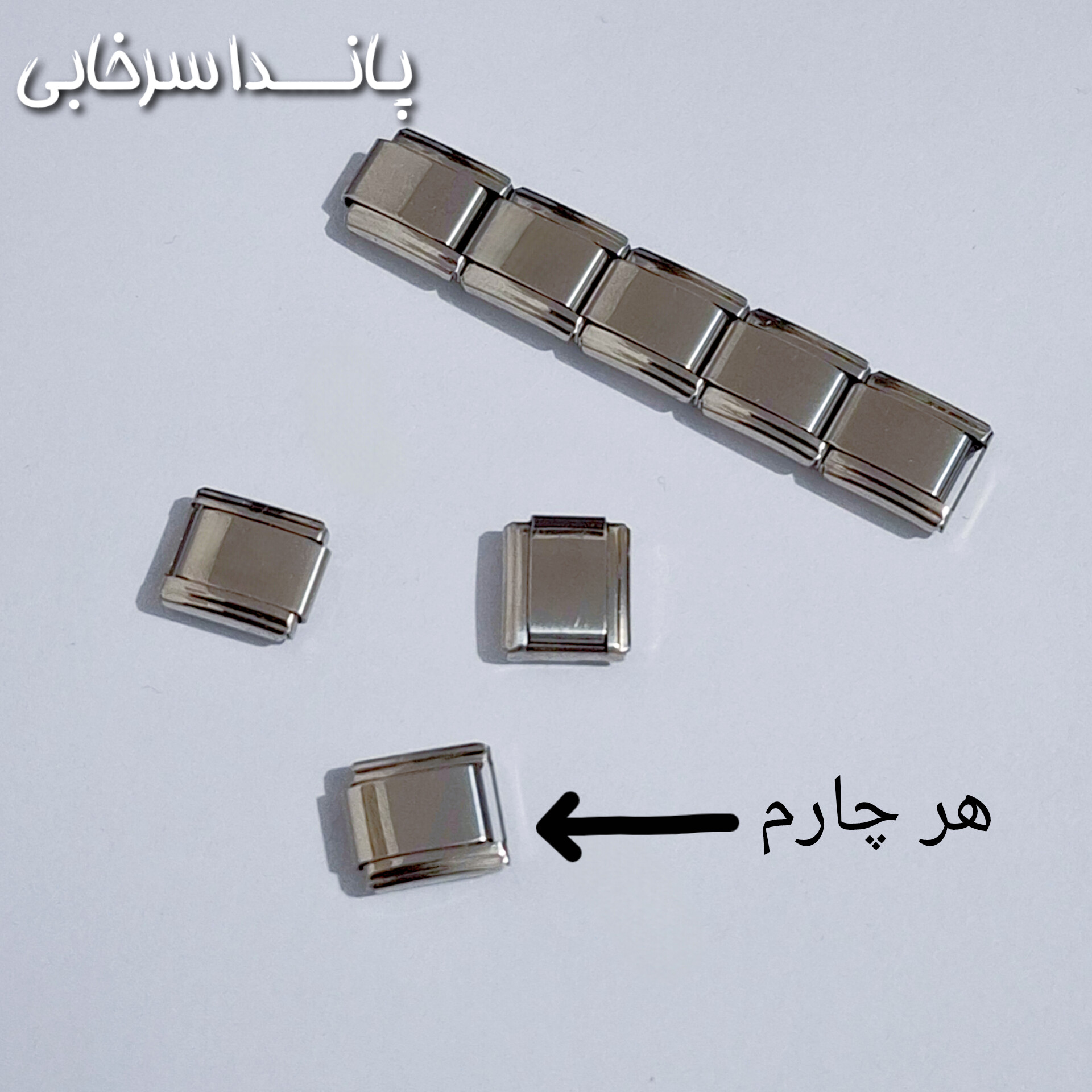 دستبند ساده چارم ایتالیایی استیل رنگ ثابت اگر دورمچتون بیشتر از سانت زنانه یا مردانه هست چارم اضافه هم تهیه کنید هر چارم اضافه ۱ سانت اضافه میشه به انداره دستبند