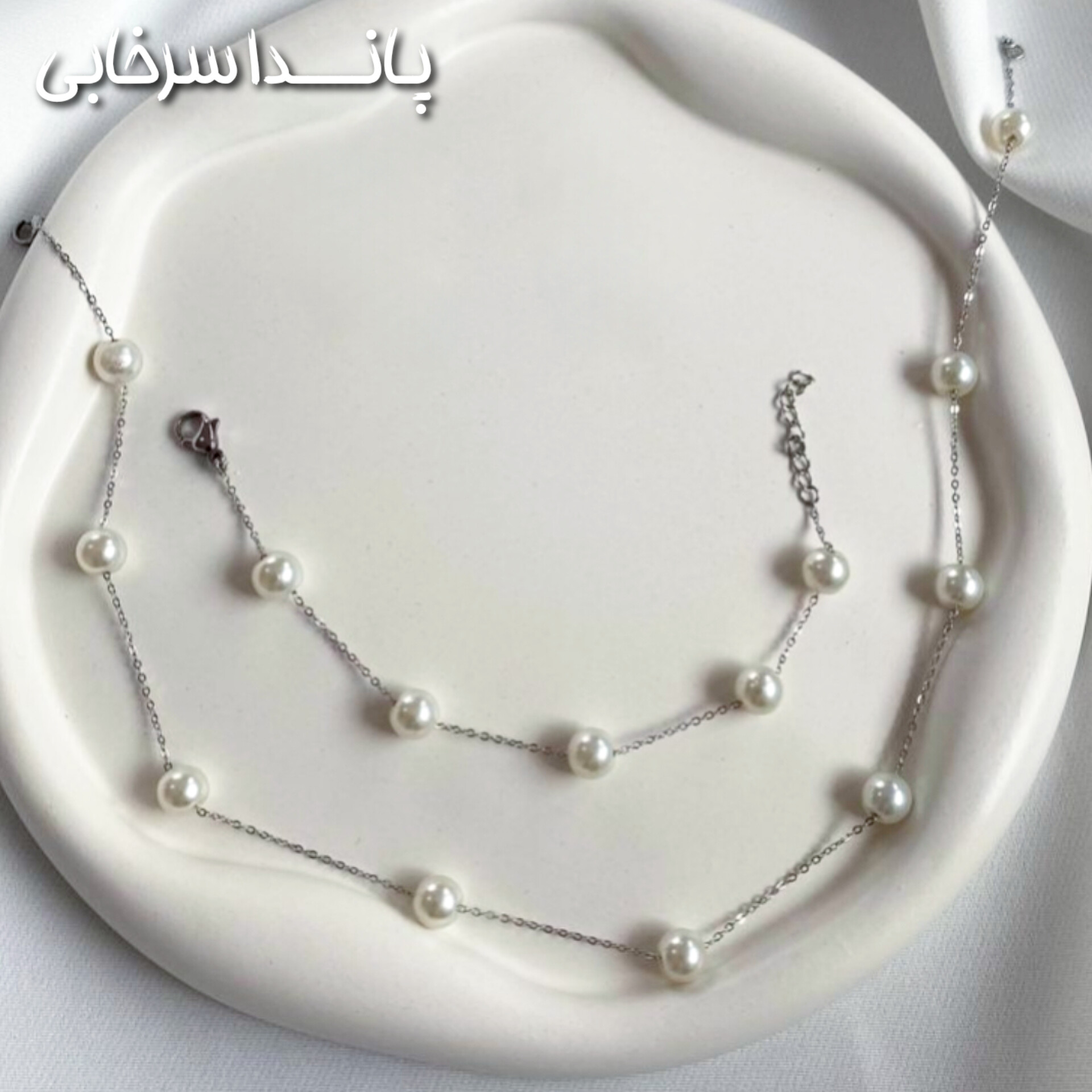 گردنبند و دستبند مرواریدی نقره ای استیل