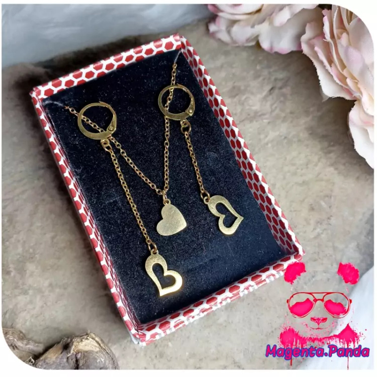نیم ست استیل رنگ ثابت تضمینی طرح قلب با گوشواره های بلندو کوتاه