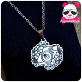 گردنبند مدل دوربین استیل رنگ ثابت نقره ای زنجیر