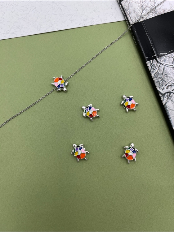 گردنبند لاک پشت فانتزی با زنجیر استیل رنگ ثابت
