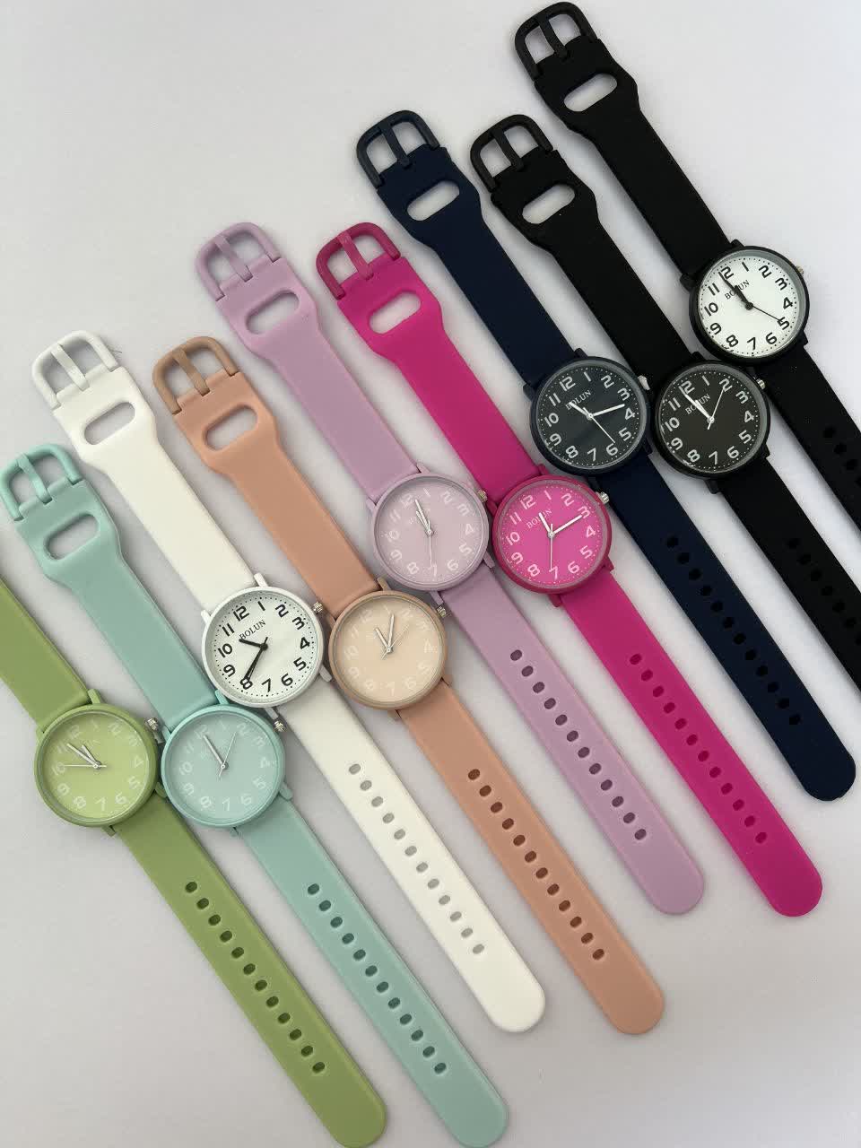 ساعت بولون بهاری رنگ پاستلی صفحه گرد بند سیلیکونی کیفیت درجه یک