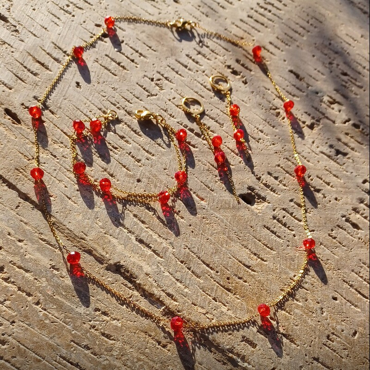 ست گردنبند و دستبند دولاین و گوشواره آویز استیل و رنگ ثابت