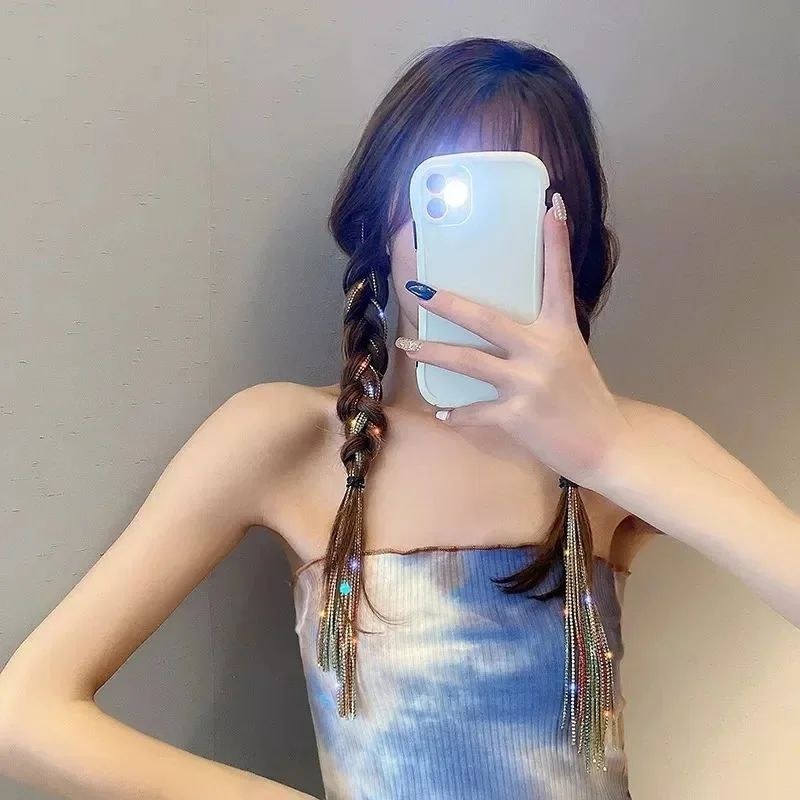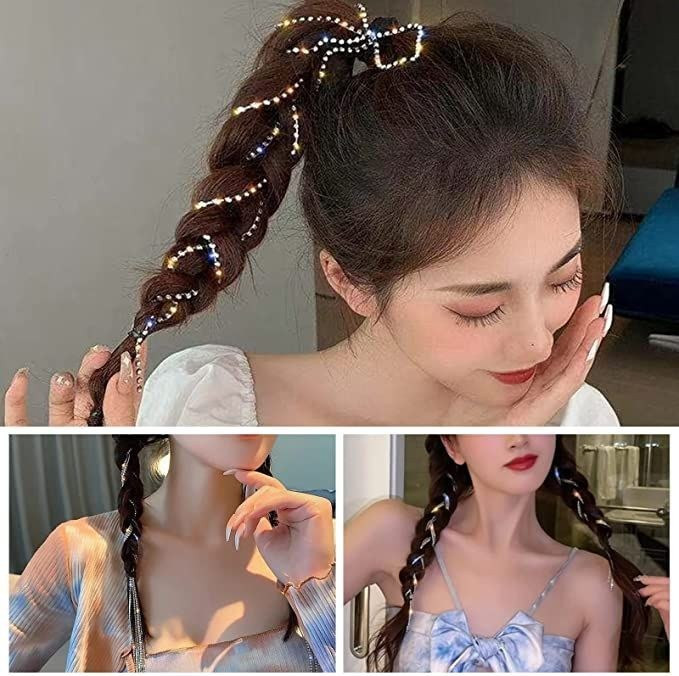 ریسه مو نگینی رنگ نقره ای هر گیره دو ریسه ای