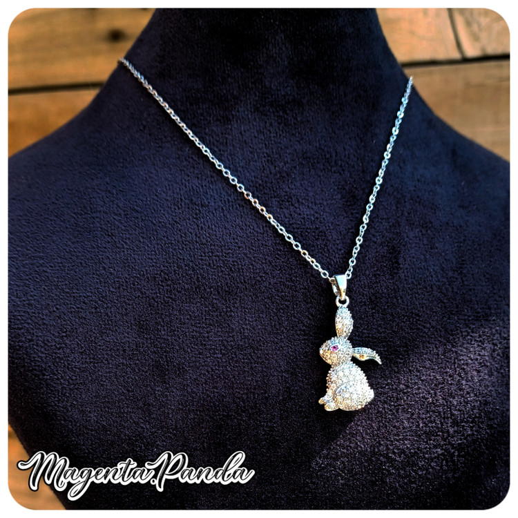 گردنبند خرگوش پُرنگین | نقرهای با رنگ ثابت - هدیه دخترانه فانتزی
