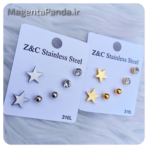 پک گوشواره میخی طرح ستاره استیل و رنگ ثابت۹۸٬۰۰۰ تومان