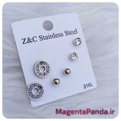 گوشواره حلقه ای استیل ضد حساسیت رنگ نقره ای 3 سایز۶۰٬۰۰۰ تومان