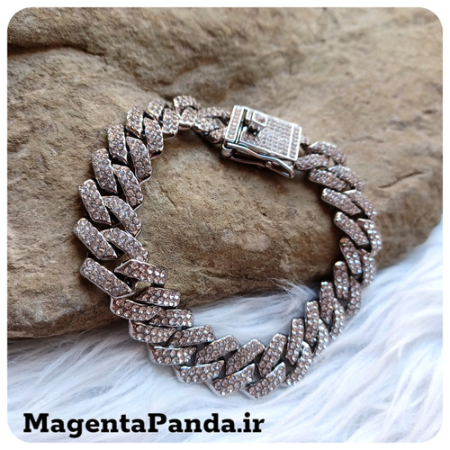 دستبند مردانه فول نگین رنگ نقره ایناموجود