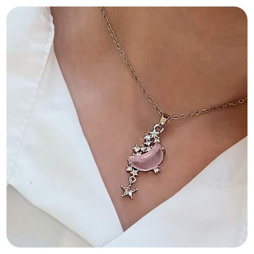 گردنبند دخترانه ماه سوارسکی با نگین های صورتی قلبیناموجود