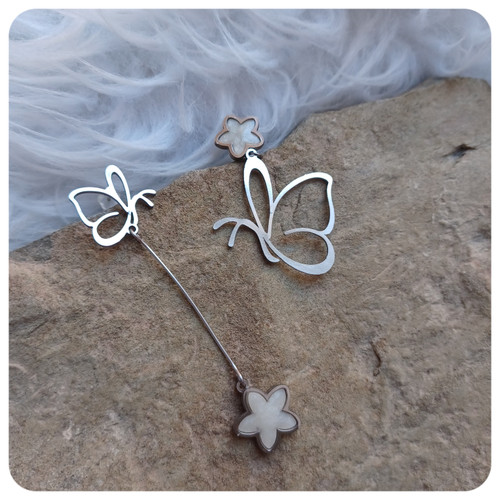 گوشواره بلند و کوتاه پروانه استیل رنگ ثابتناموجود